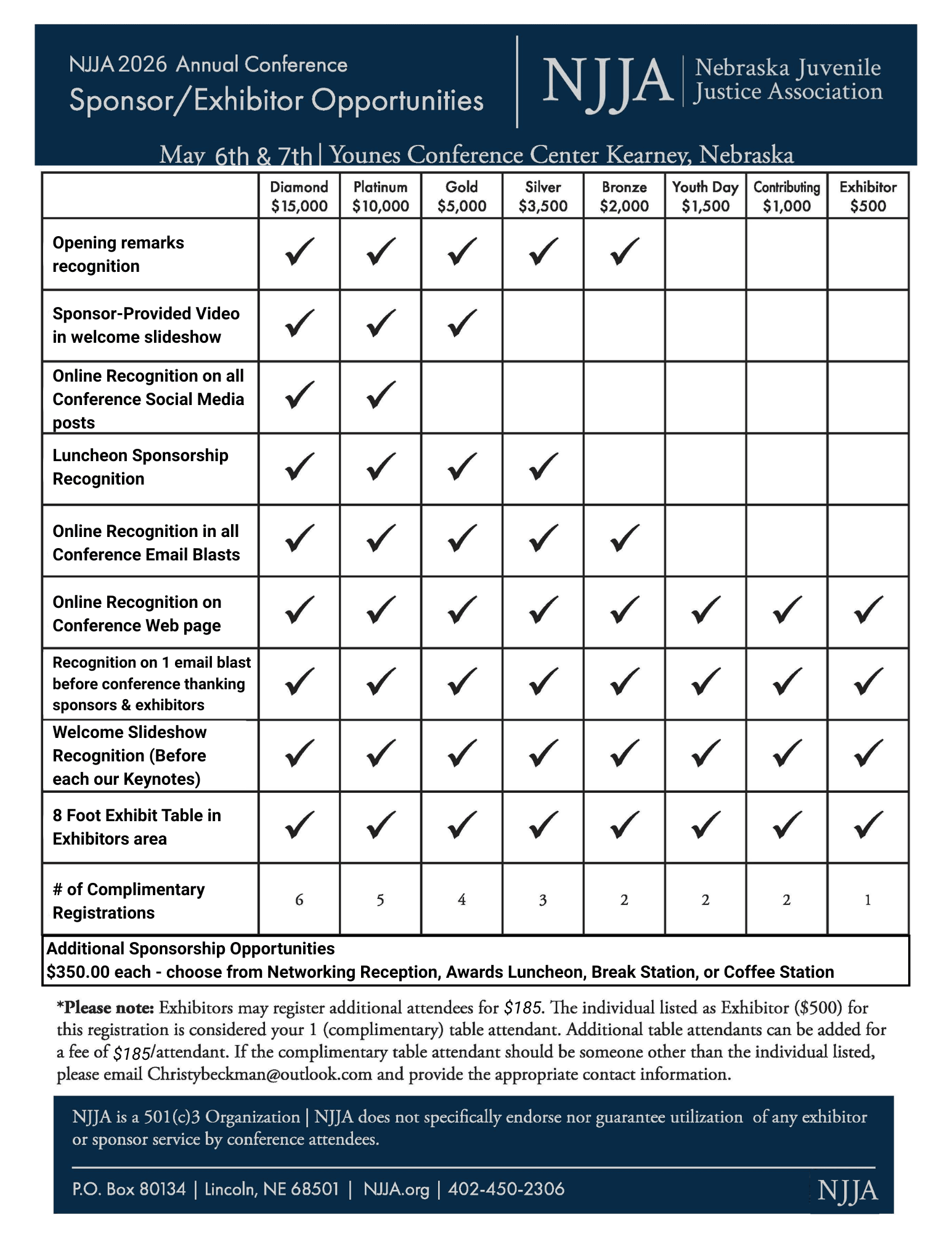 Please fill out the information below indicating who will represent your agency at the conference. You will receive an email requesting additional registrations based on sponsorship level and payment.